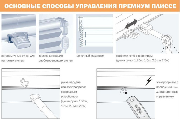 Перш ніж жалюзі плісе купити, потрібно враховувати не тільки тип конструкції, але й вид керування шторами, від чого теж залежить їхня ціна. Можна обрати стандартну механічну систему, найбільш доступну та звичну. Якщо вікно розташоване високо, зазвичай пропонується встановлення штор плісе на дистанційному автоматичному або редукторному керуванні — цей варіант дуже зручний для власників скляних дахів і мансард. Розглянемо детальніше: