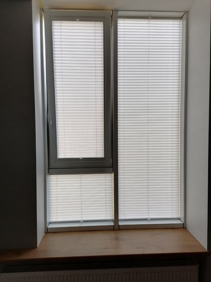 - Натяжні або вільновісячі плісировані жалюзі — це оптимальні штори-плiсе на пластикові вікна стандартної прямокутної форми. Вироби також збираються прямо на вікнах засклених балконів або в інших приміщеннях, де це доречно.