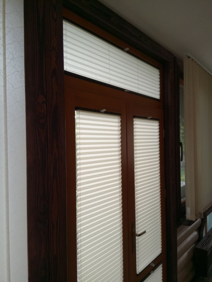 - Аркові плісировані жалюзі — дозволяють повністю перекрити доступ сонячного світла або припинити цікавість перехожих у разі, якщо вікна великі та нестандартної форми. Окрім арочної, полотна можуть бути трапецієподібними, трикутними або іншої можливої форми.